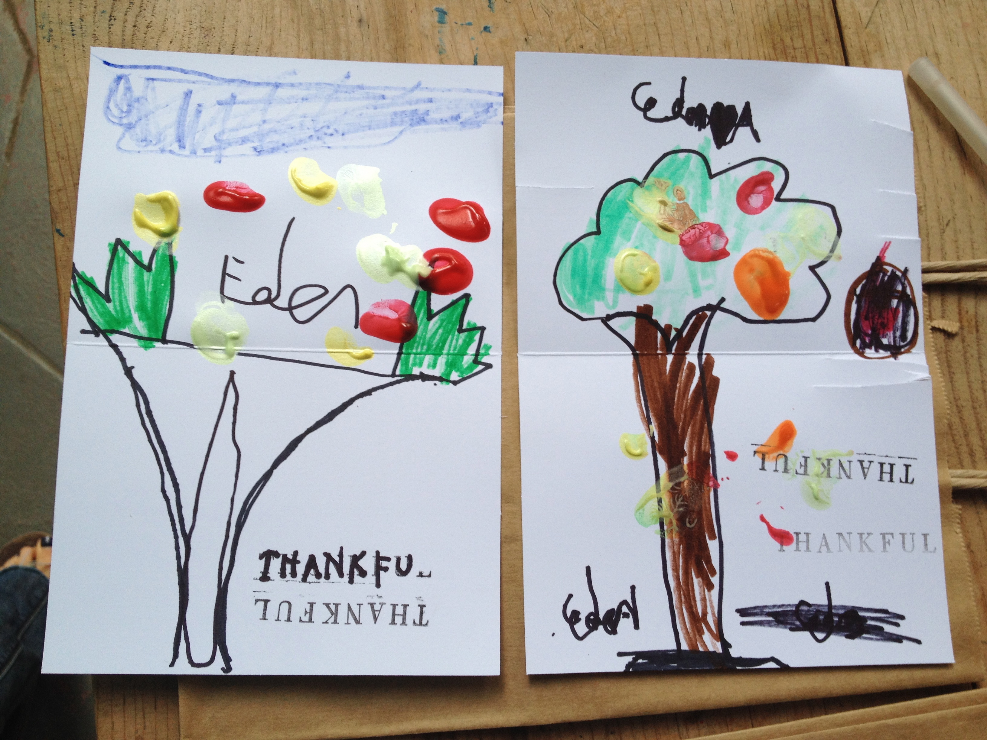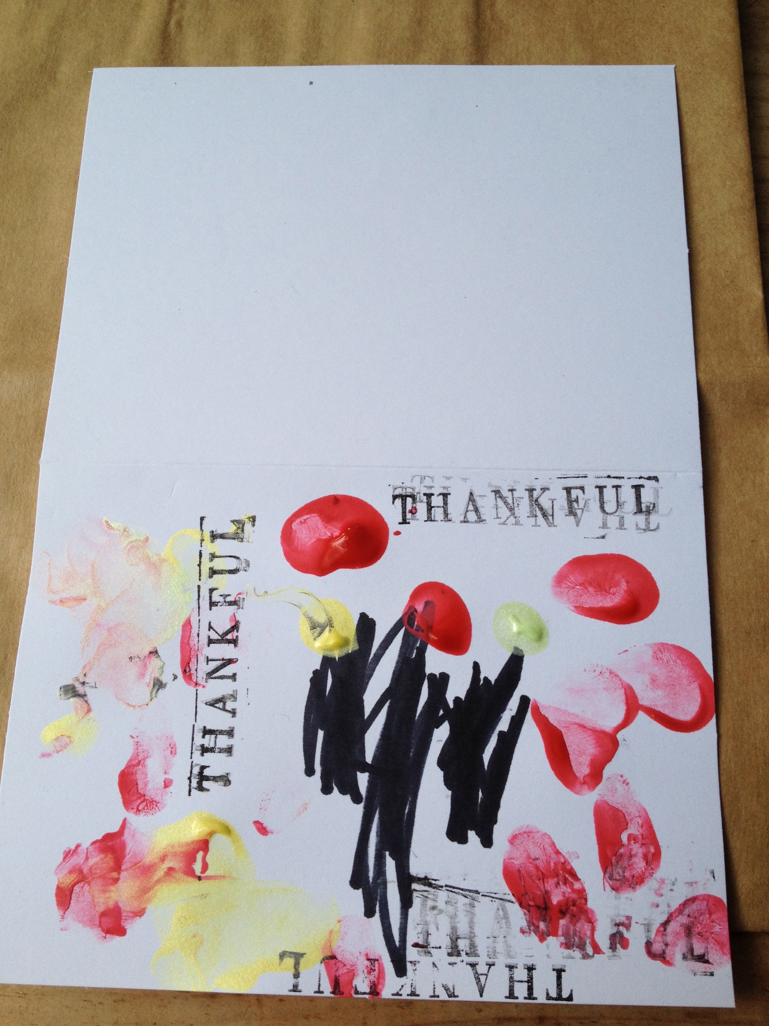 We made Thank You cards using a tree and leaves as inspiration.