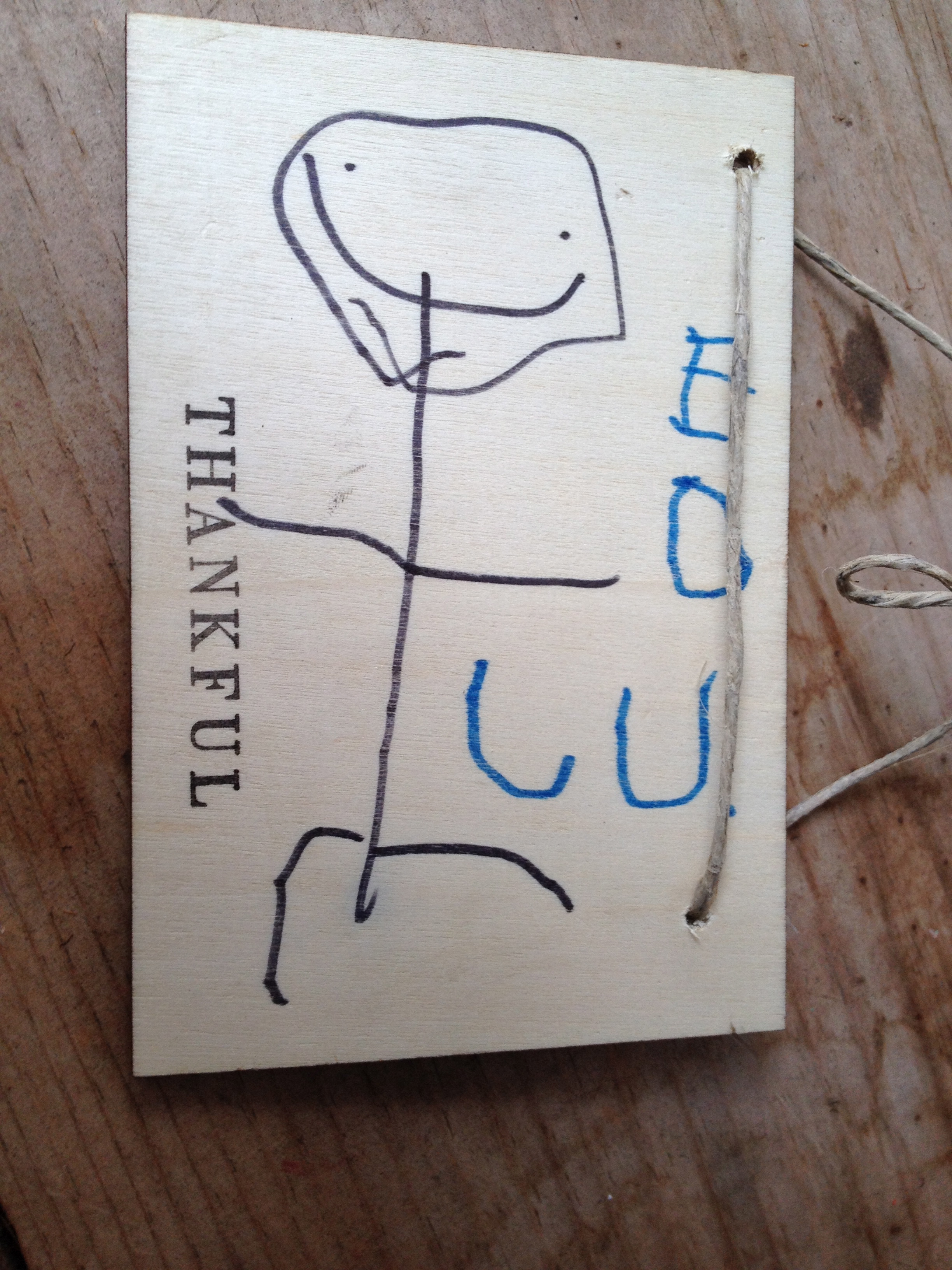 For our final activity we got together and discussed what we were thankful for. Then we used the drill to create holes in the wood pieces we had. To complete the wall hanging, we drew pictures or wrote words to express what we were thankful for. Awesome work!
